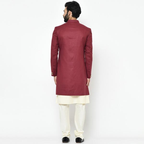 0 review(s) for "Men Maroon & Beige Solid Sherwani Set"